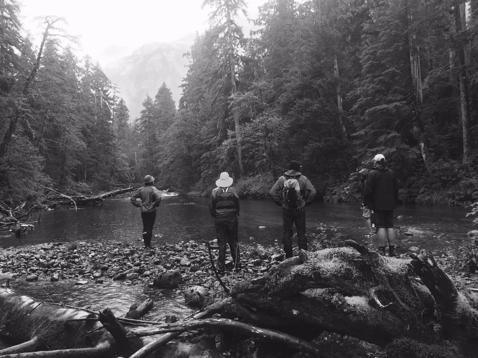 We returned up the river in the evening to simply observe and be still; to practice becoming part of the wilderness. As we sat together alongside the flow of the river the feeling of Great Bear's ecosystem thriving all around us was undeniable. The lush green moss seemed to illuminate simply at the thought of salmon swimming by, enrapturing us in envisioning the salmon's contribution to the nourishment and growth of the rainforest flora and fauna throughout their life cycle.